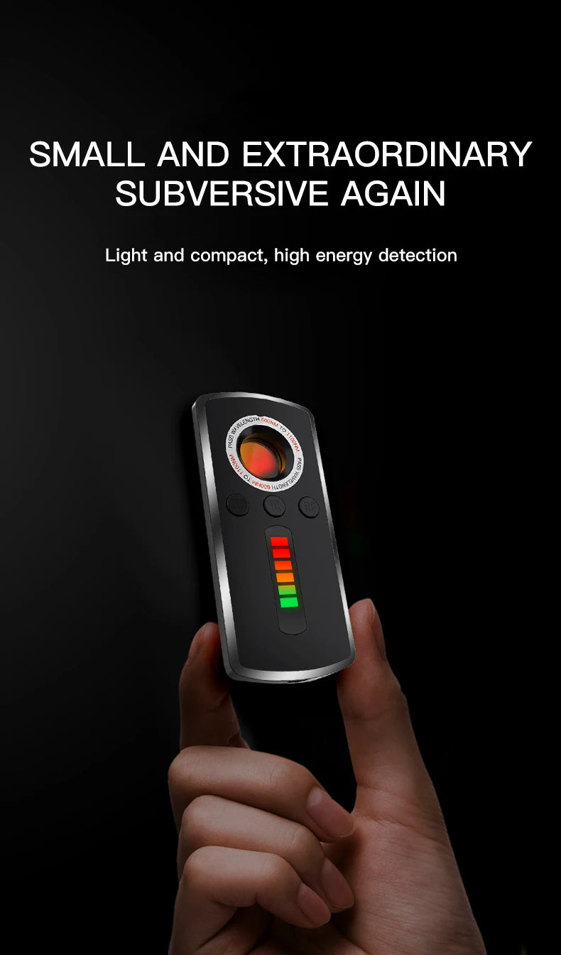 Protect your privacy anywhere. This portable detector identifies hidden cameras using LED laser reflection technology. Ideal for hotels, rentals, fitting rooms, and travel.